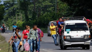A las 04:30 horas llegó la caravana migrante al puente fronterizo Guatemala – México. Treinta minutos después,policías fronterizos de Guatemala abrieron las puertas, pero