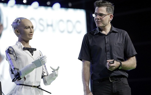El androide desarrollado por David Hanson para la compañía Hanson Robotics será la primera ponente con inteligencia artificial en este evento, posee características humanas, es capaz de gesticular y de entablar conversaciones con personas. Además posee cámaras que le permiten “observar” las expresiones faciales de las personas que conserva e imita.